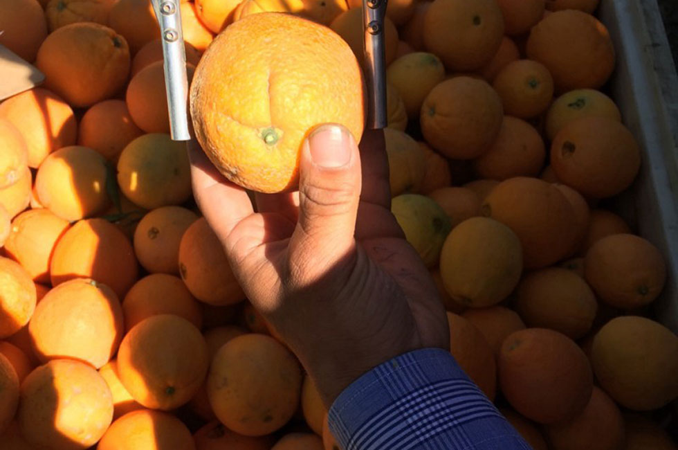 Measuring navels in the field to give the packing house a heads up on how it should pack-out by size.